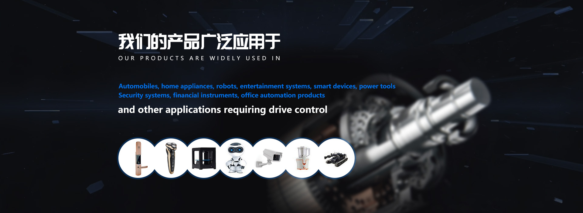 Our products are widely used in automobiles, home appliances, robots, entertainment systems, intelligent devices, power tools, security systems,